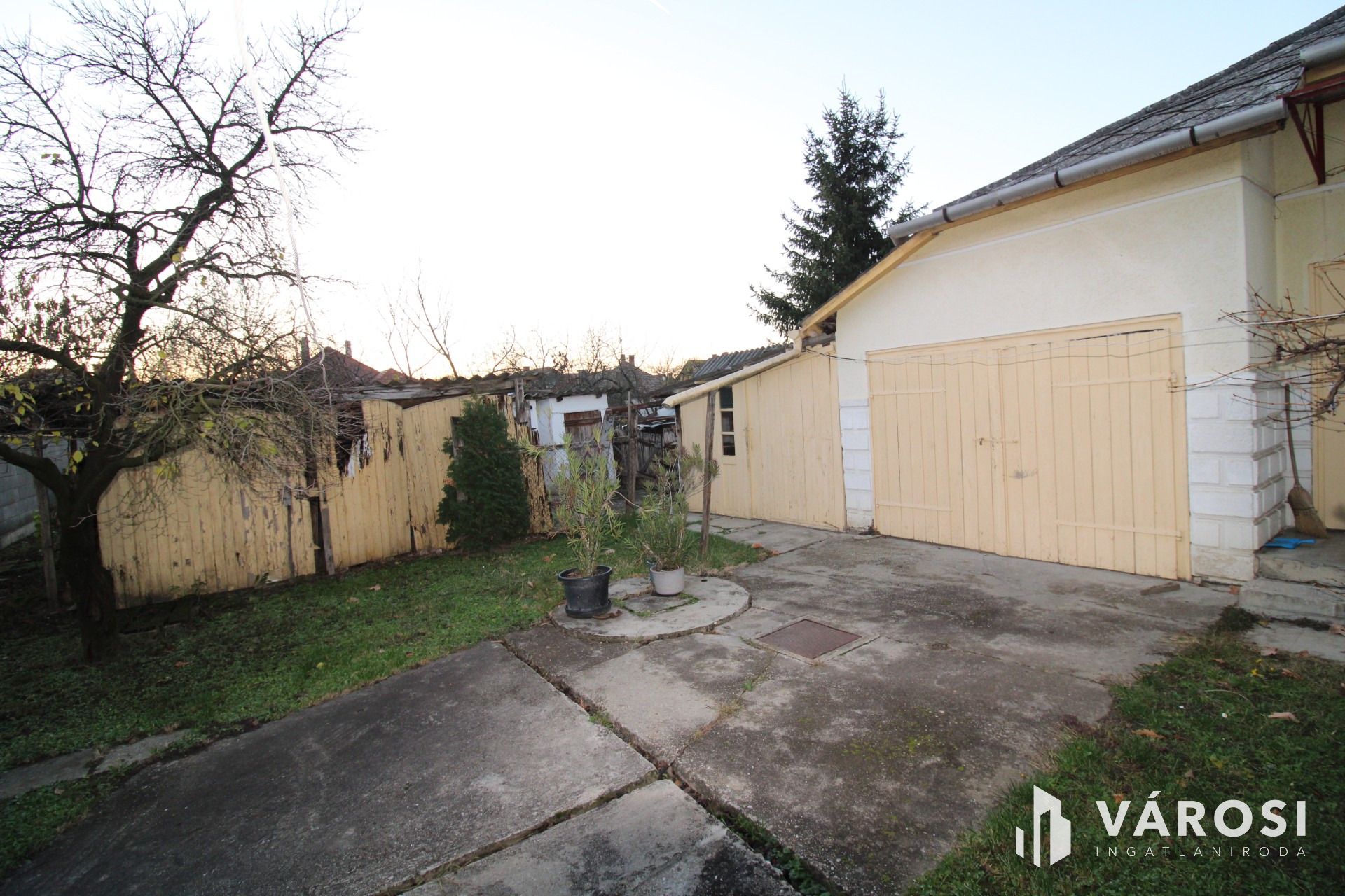 Az ingatlanhoz tartozik egy kisebb terasz, egy garázs, műhely és további tároló helyiségek is.