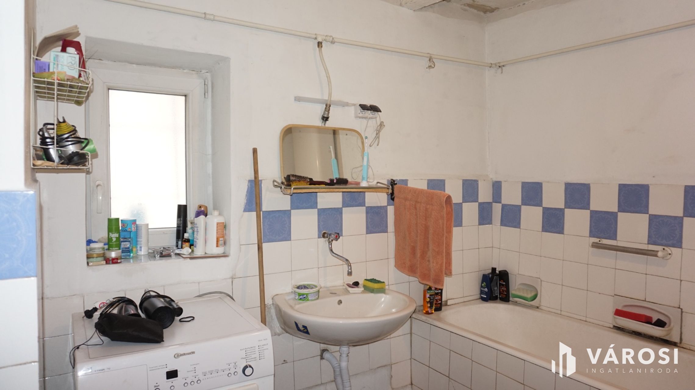 -A meleg vizet villanybojler szolgáltatja, mely a fürdőben található