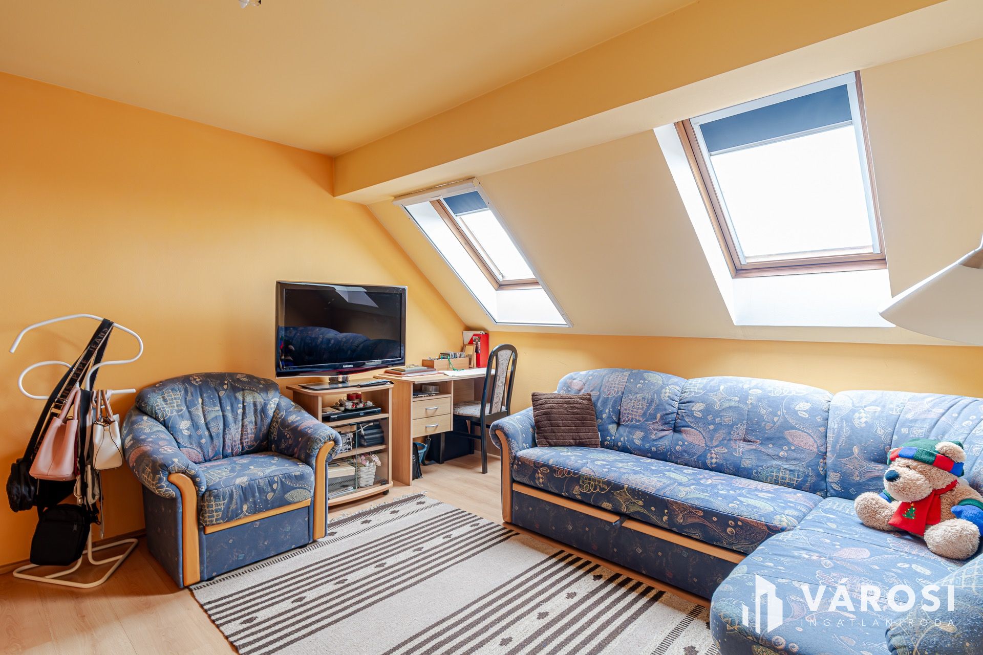 ​Tetőtér: 3 különálló hálószoba, fa Velux ablakokkal. A galérián beépített gardróbszekrény és egy plusz mosdó növeli a komfortot.