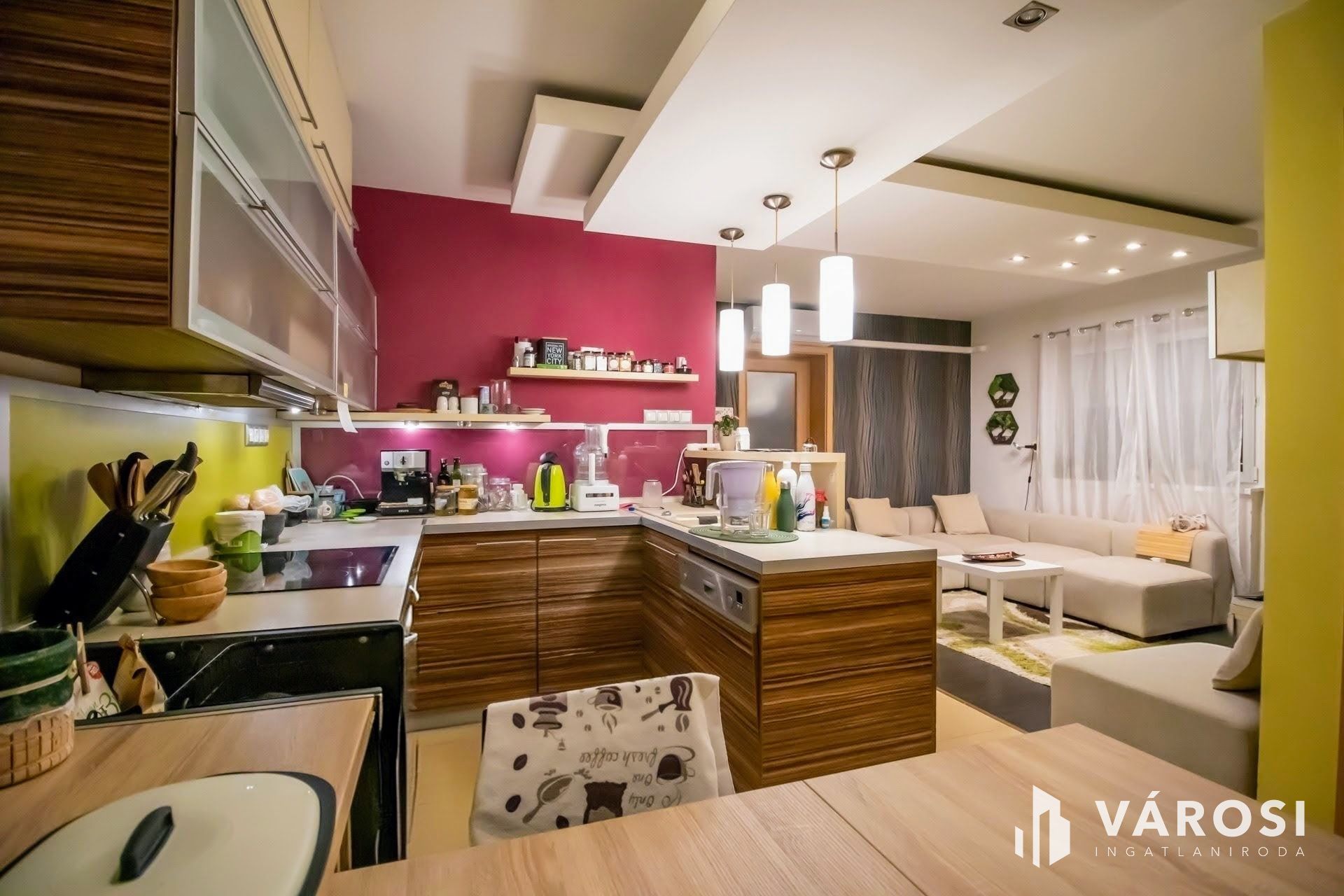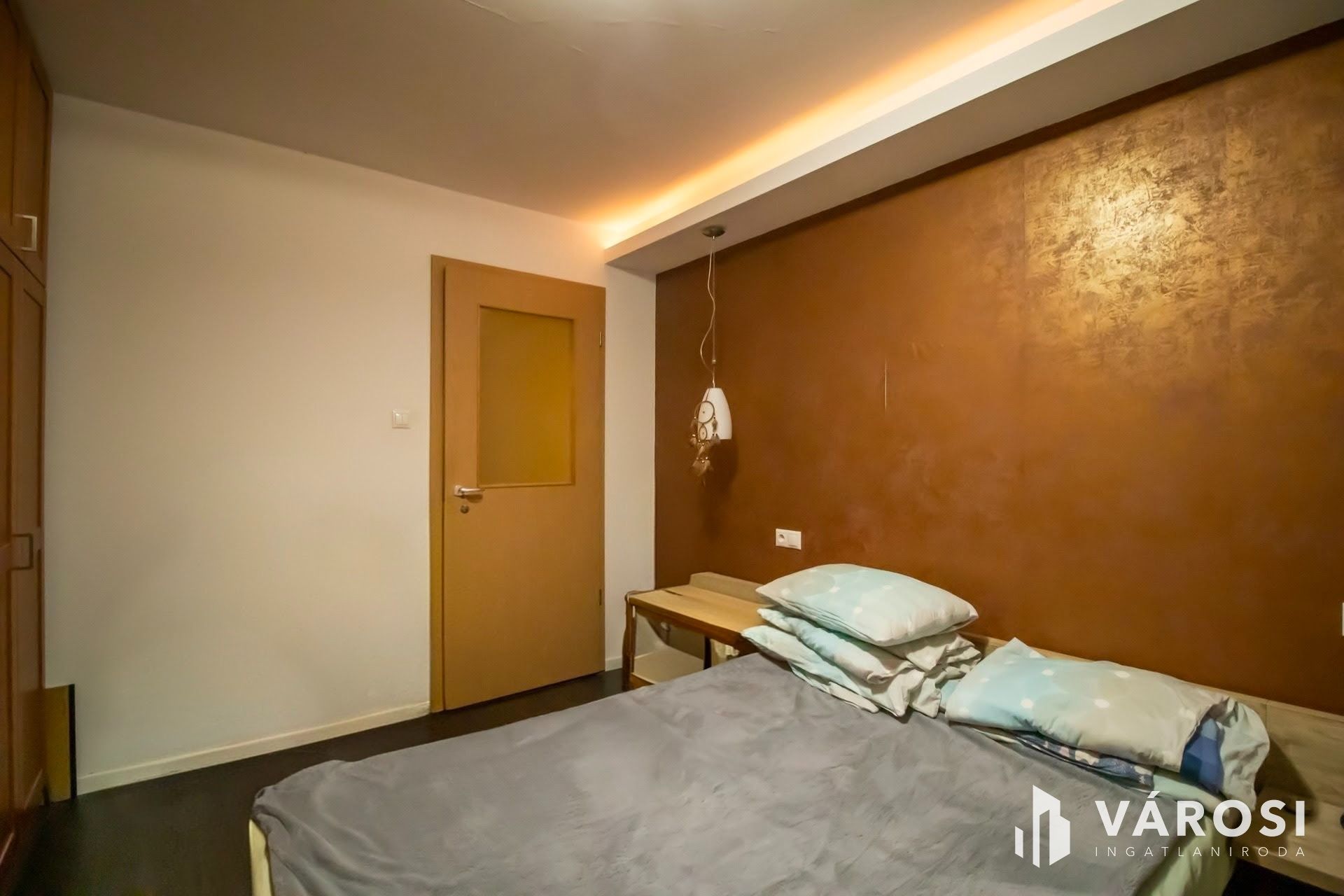 A lakáshoz jár természetesen a méretre gyártott konyhabútor beépített gépekkel és a következő tulajdonosokat fogja szolgálni a továbbiakban. Az előszobában és hálószobában a beépített szekrények is maradnak.