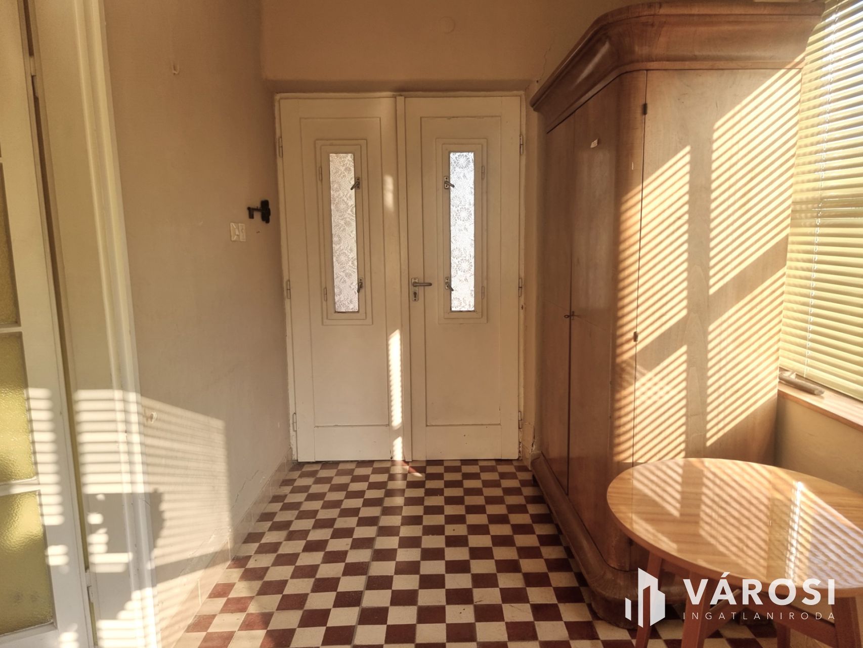 + A szobák aljzata szép állapotú, fa parkettás, a többi helyiségben régi mozaik lapok vannak.