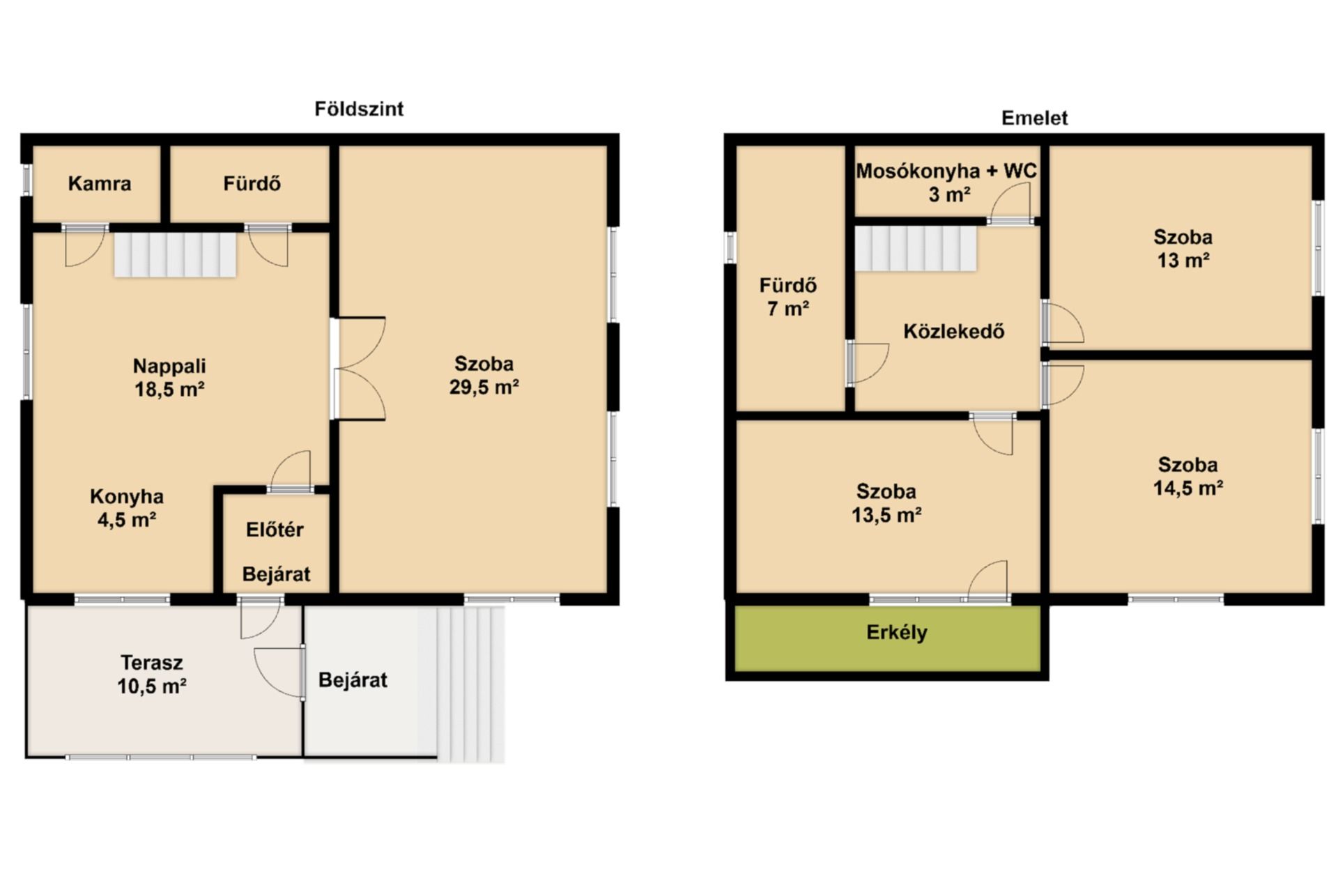 - 10,5 m²-es beépített terasz