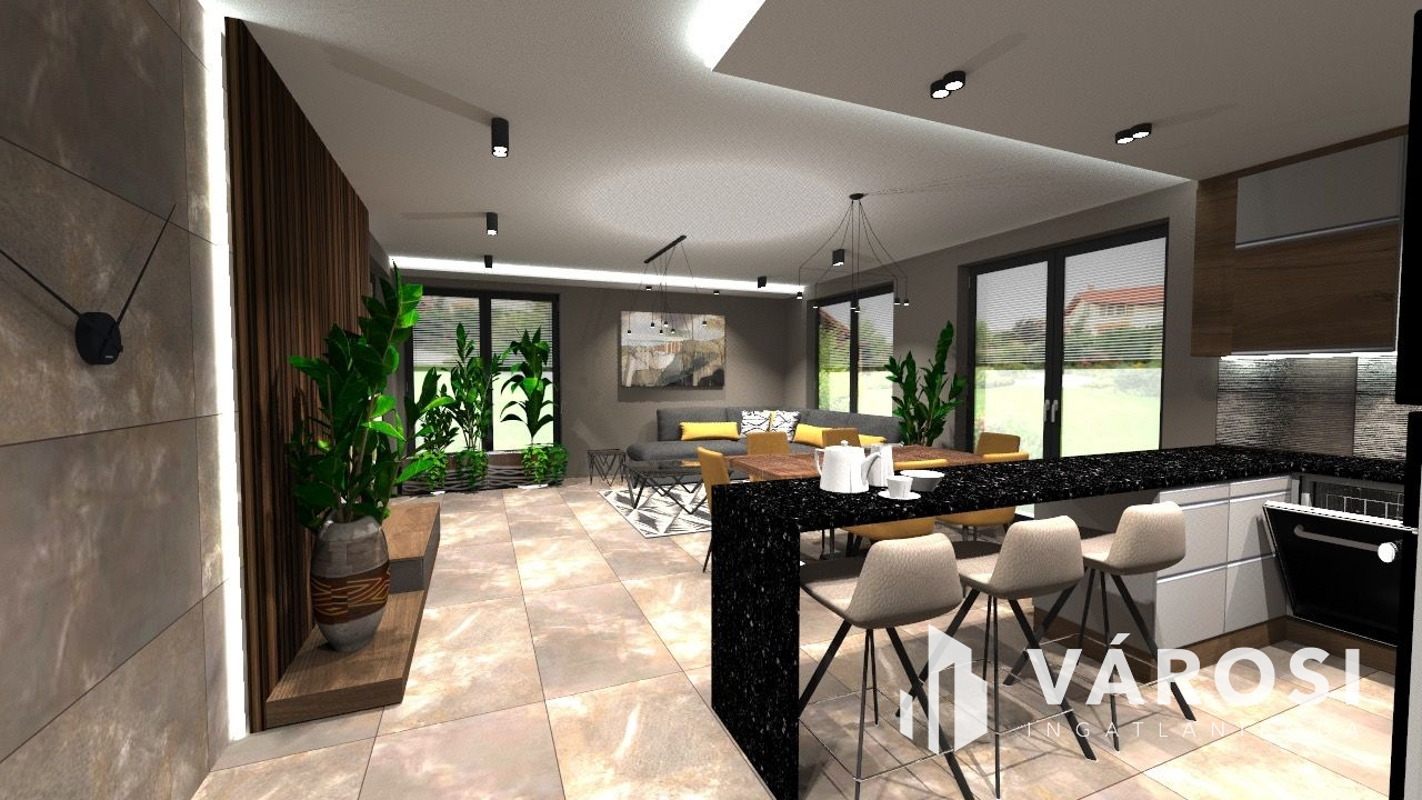 A hirdetésben szereplő ház 120 m2 alapterületű, amerikai konyhás nappali + 4 hálószobás elrendezésű 2 fürdőszobával. Igénybe vehető rá minden fajta állami támogatás és CSOK+ hitel, illetve ÁFA visszaigénylés is!