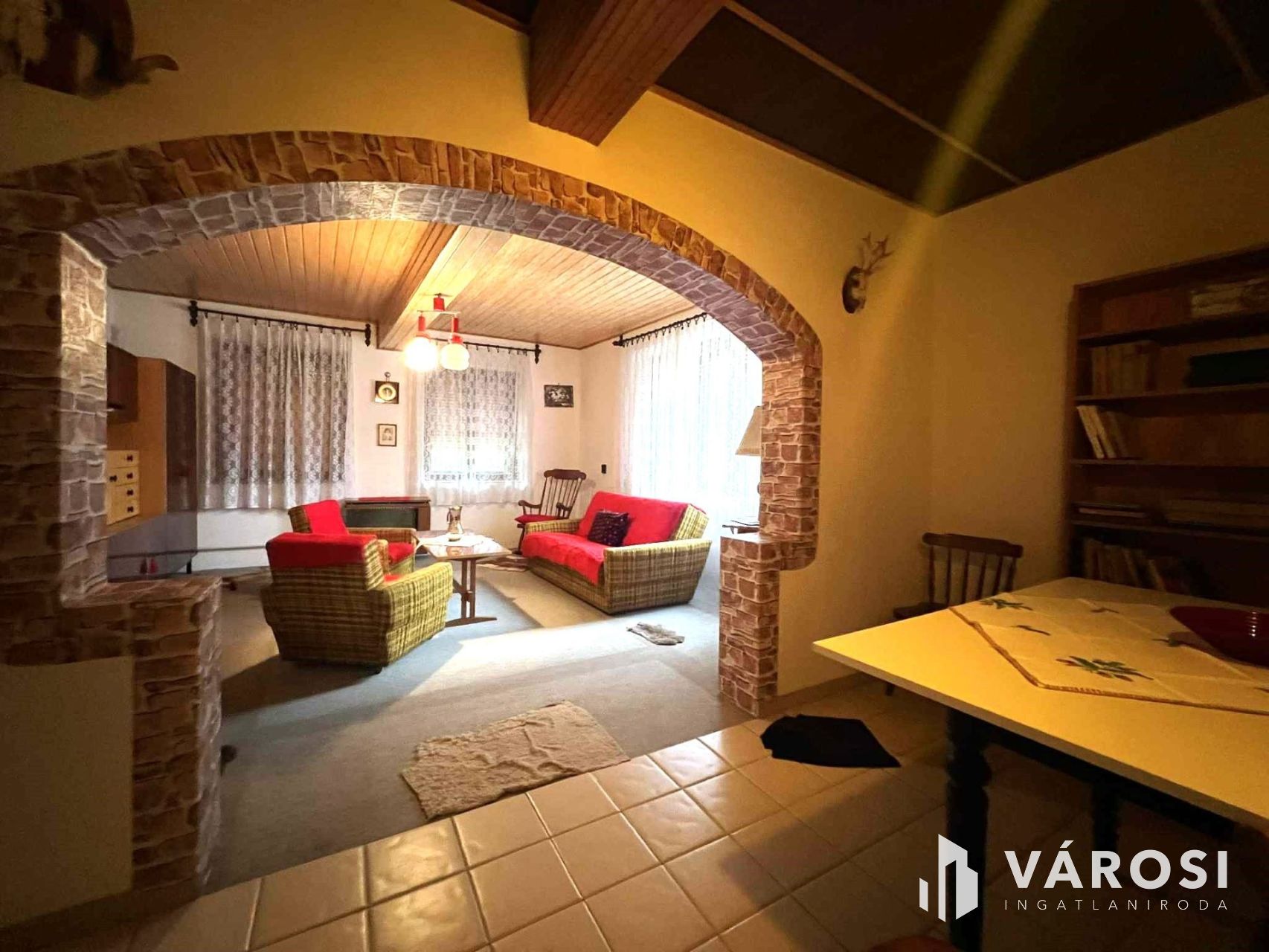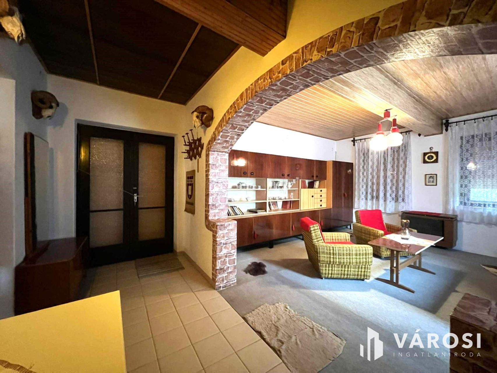 -3 szoba, világos, padlószőnyeggel burkolt szobák, a nagy szoba mennyezete lambériázott.