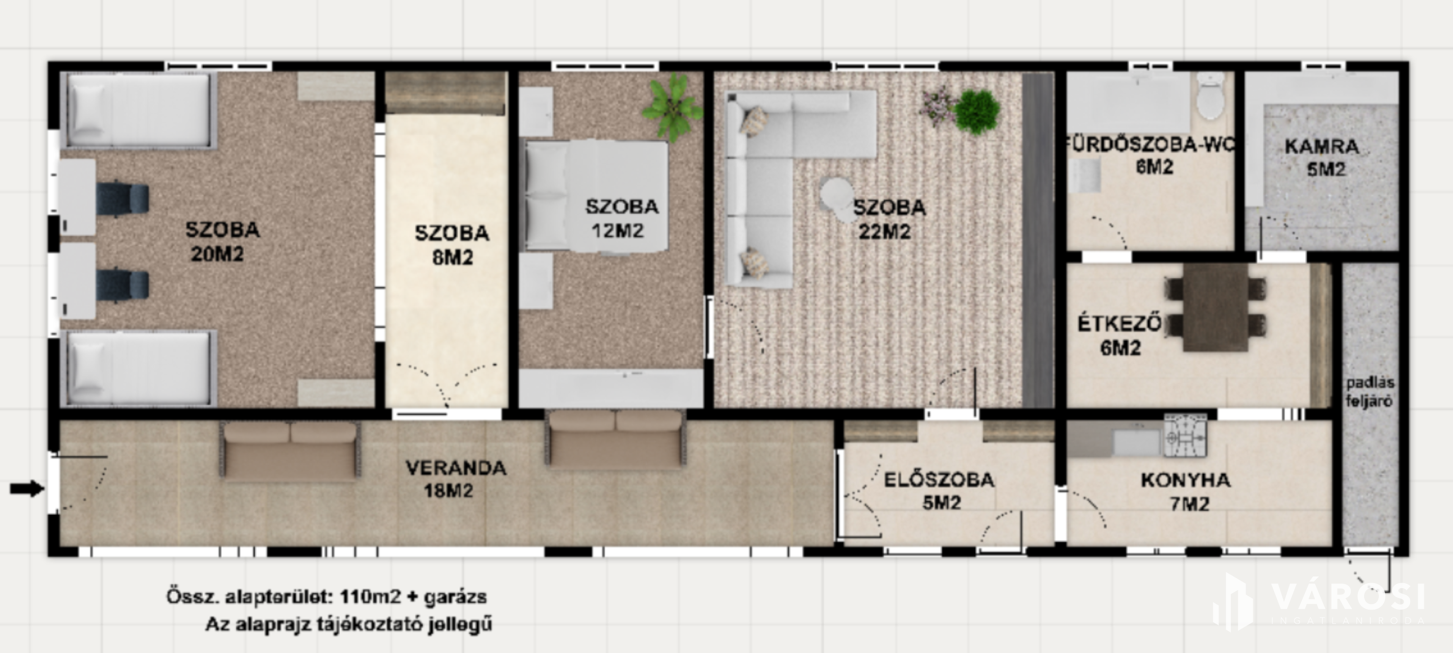 Az ingatlanhoz tartozik egy fedett de nyitott veranda, ahol kényelmesen pihenhetünk, és amelyen keresztül érkezünk a házba.