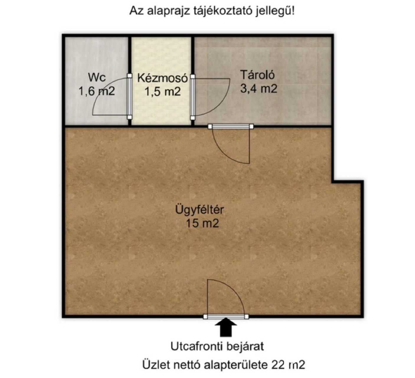 Az üzlet nettó alapterülete 22 m2